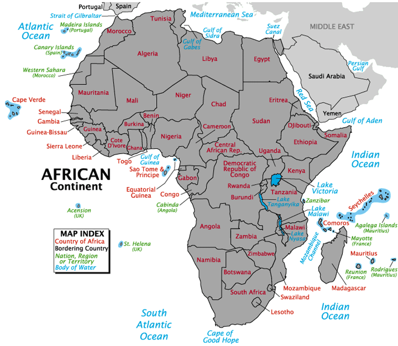 Click on the Country Map of Africa to view it full screen. File Type: png, File size: 109999 bytes (107.42 KB), Map Dimensions: 800px x 694px (256 colors)