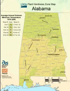 Alabama Plant Hardiness Zone Map