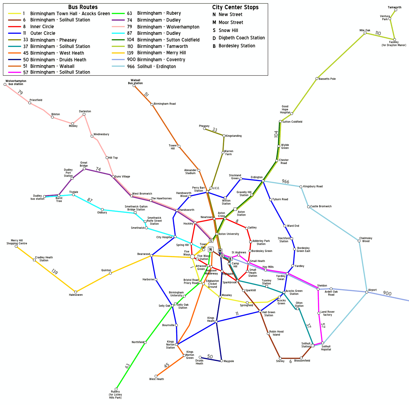 Birmingham Bus Map