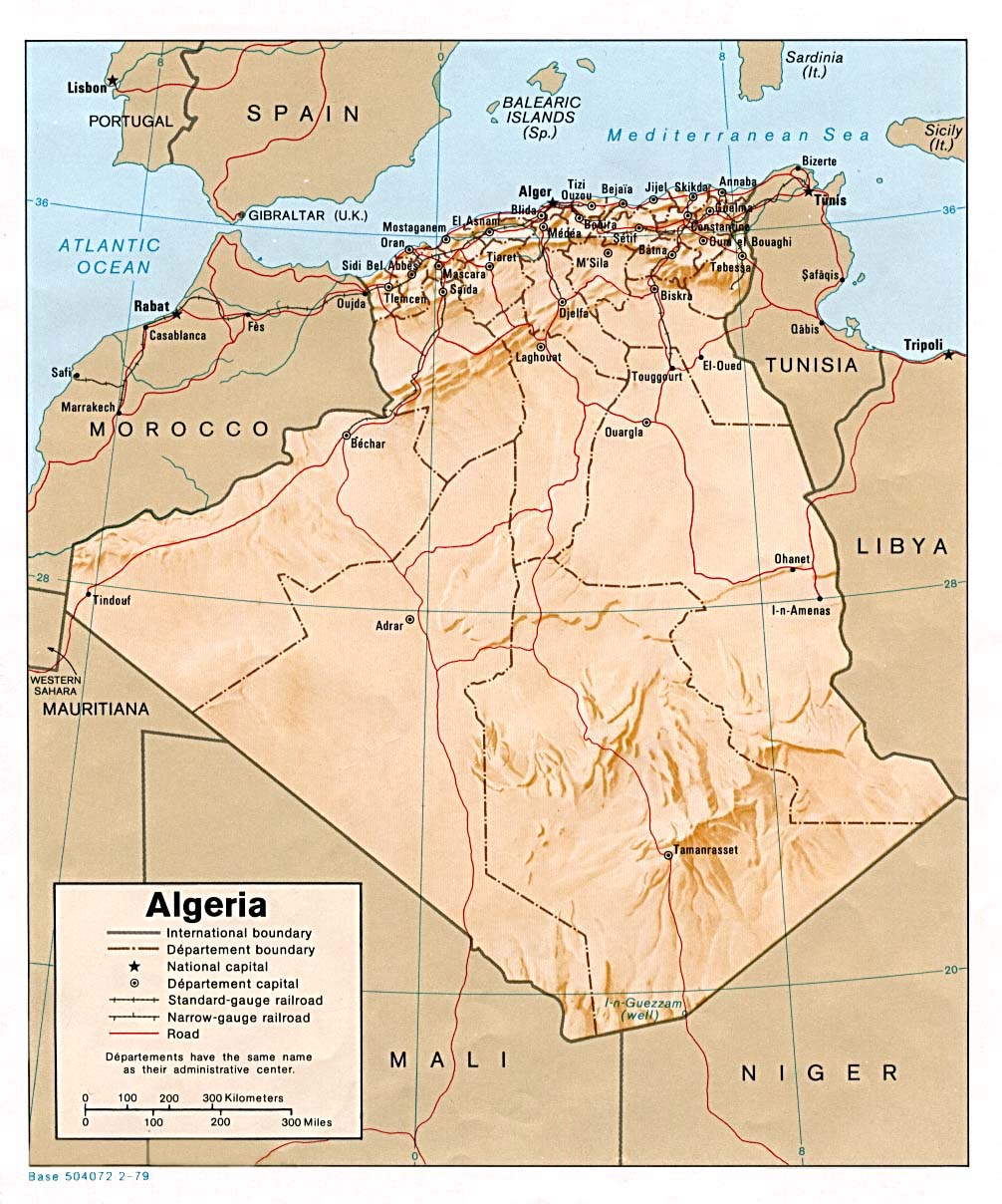 Click on the Algeria Shading Relief Map 1979 to view it full screen. File Type: jpg, File size: 216160 bytes (211.09 KB), Map Dimensions: 1006px x 1208px (16777216 colors)