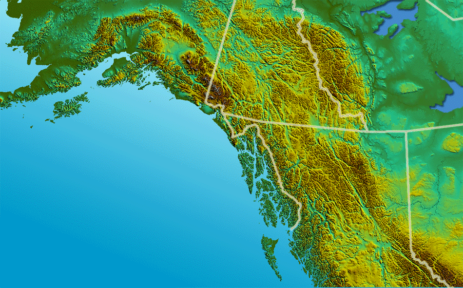Click on the Alaska Panhandle Relief to view it full screen. File Type: png, File size: 316380 bytes (308.96 KB), Map Dimensions: 950px x 591px (256 colors)