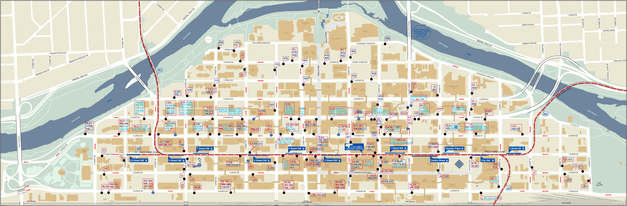 Calgary Downtown Bus Map