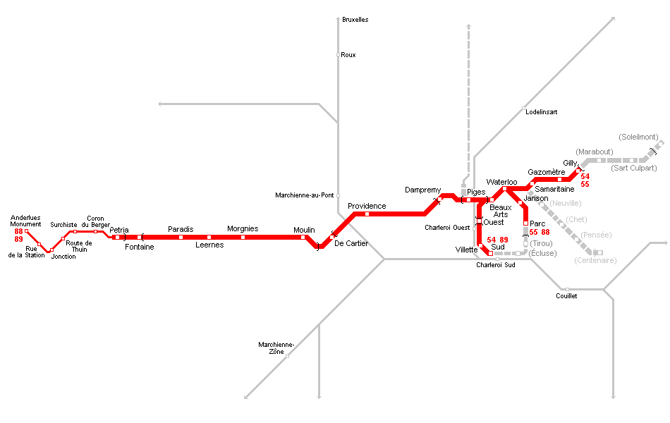 Charleroi Metro Map