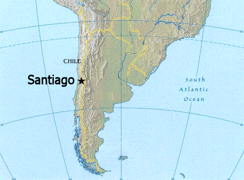 Click on the Locator Map Santiago De Chile to view it full screen. File Type: png, File size: 53369 bytes (52.12 KB), Map Dimensions: 500px x 370px (256 colors)