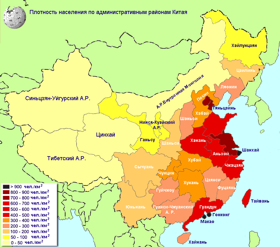 Click on the Population Density of China By First Level Administrative Regions(russian) to view it full screen. File Type: png, File size: 41525 bytes (40.55 KB), Map Dimensions: 900px x 794px (256 colors)