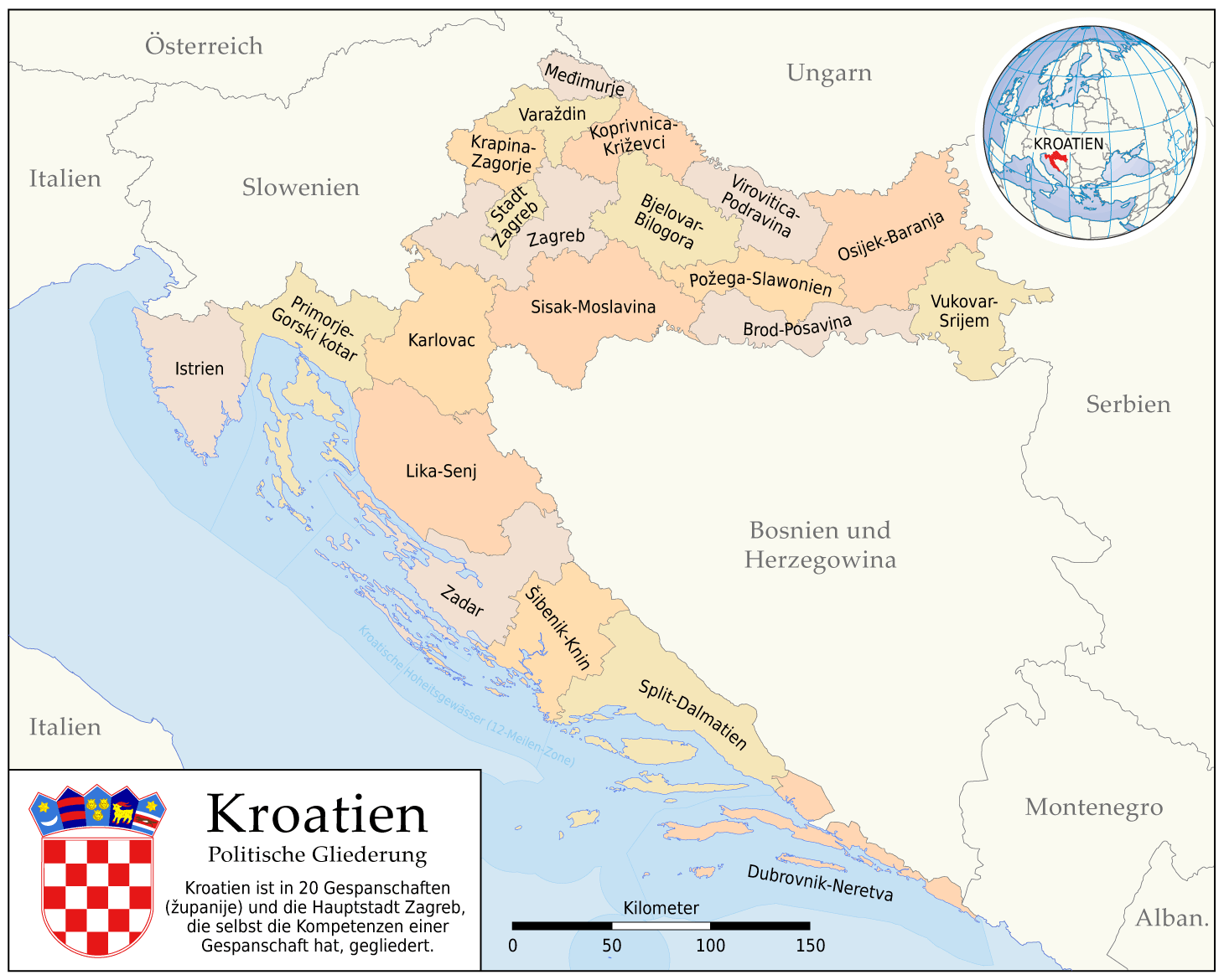 Kroatien  Politische Gliederung (karte)