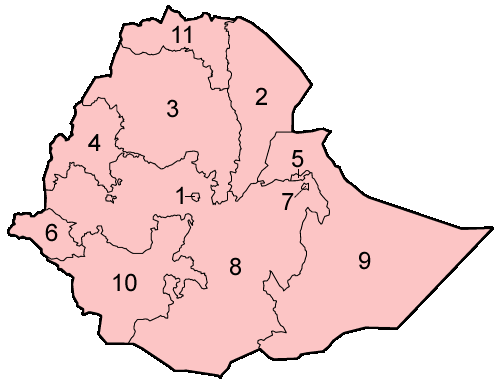 Ethiopia Regions Numbered