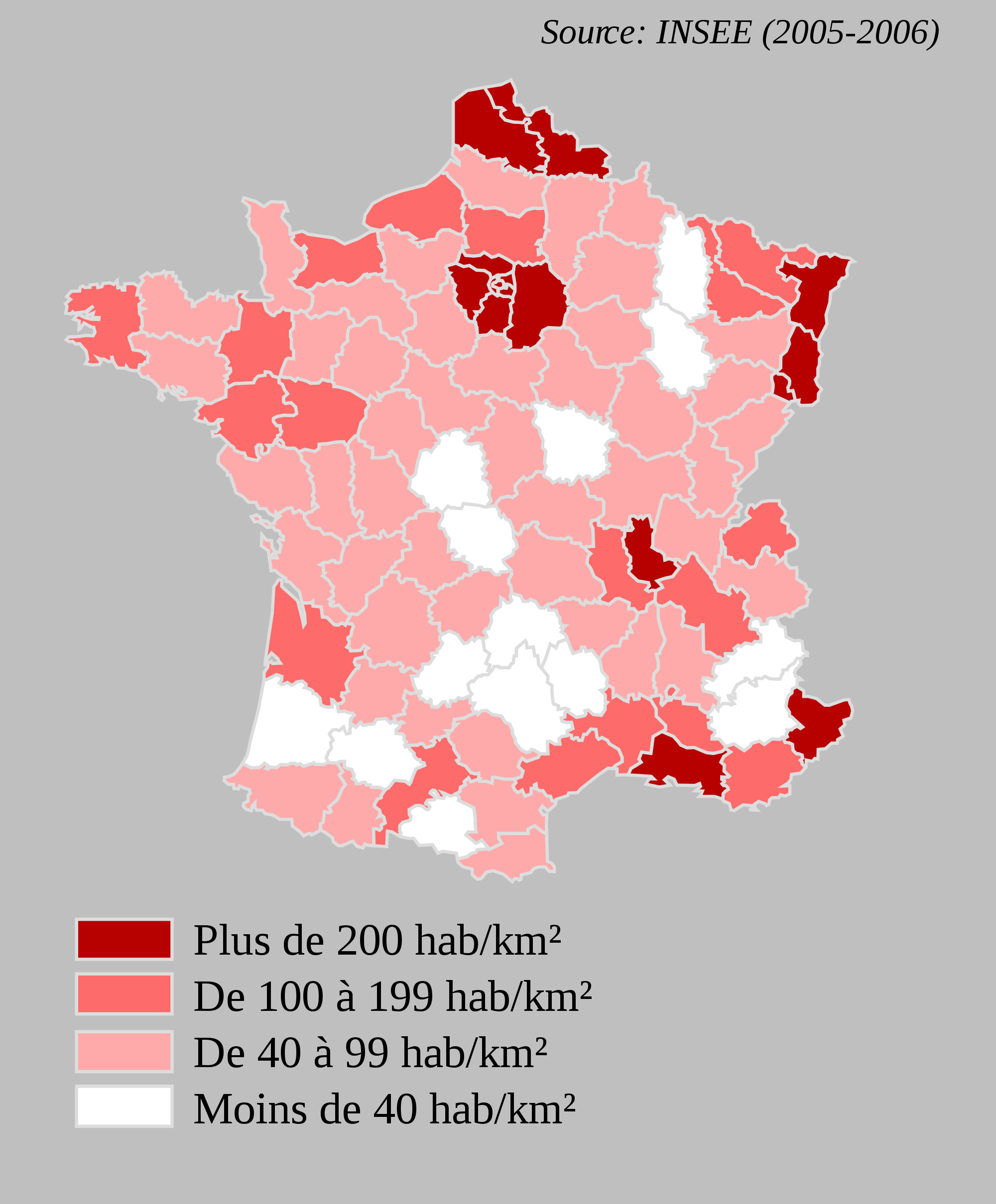 France Departments With Population Density