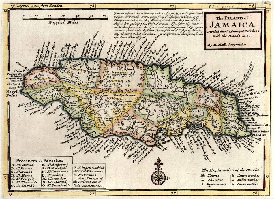 Click on the Moll the Island of Jamaica to view it full screen. File Type: png, File size: 448147 bytes (437.64 KB), Map Dimensions: 950px x 690px (256 colors)