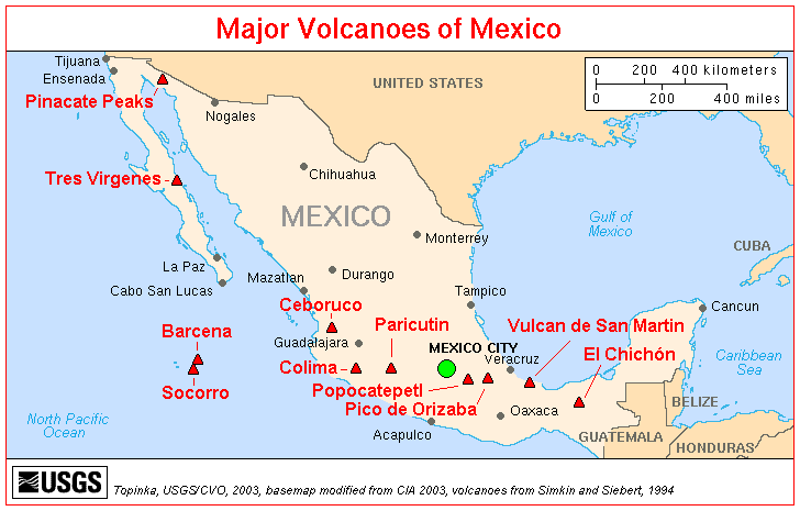 Map Mexico Volcanoes