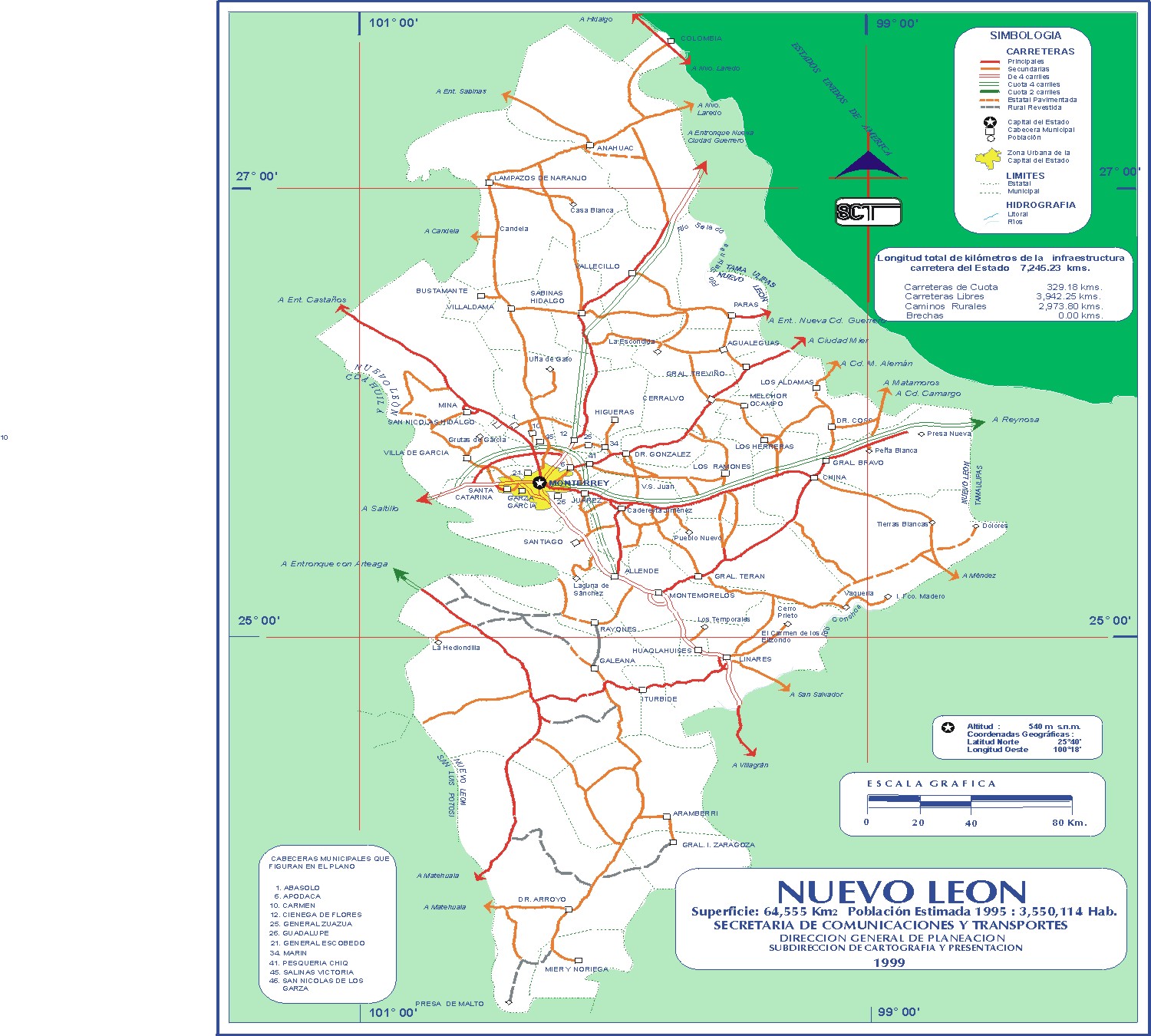 Nuevo Leon Mexico Road Map