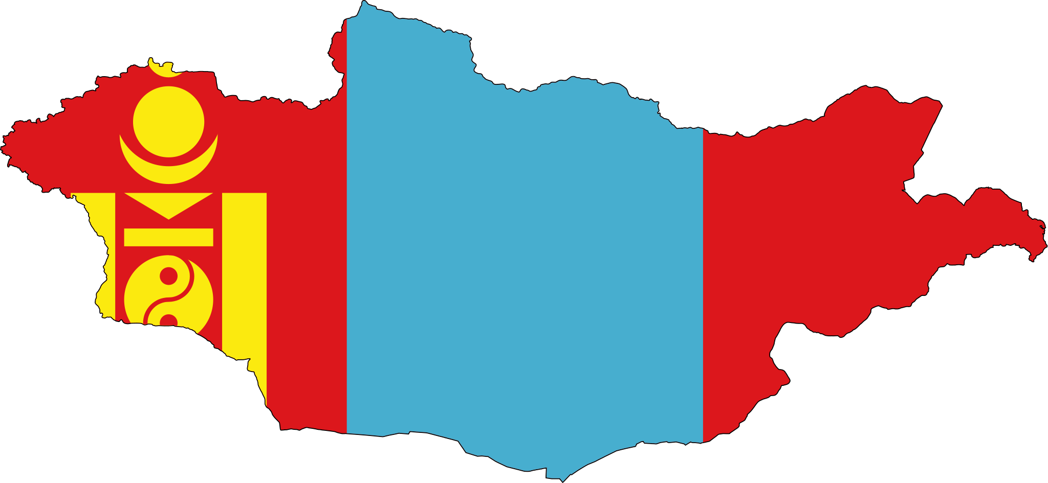Click on the Mongolia Flag Map to view it full screen. File Type: png, File size: 38257 bytes (37.36 KB), Map Dimensions: 2048px x 945px (256 colors)