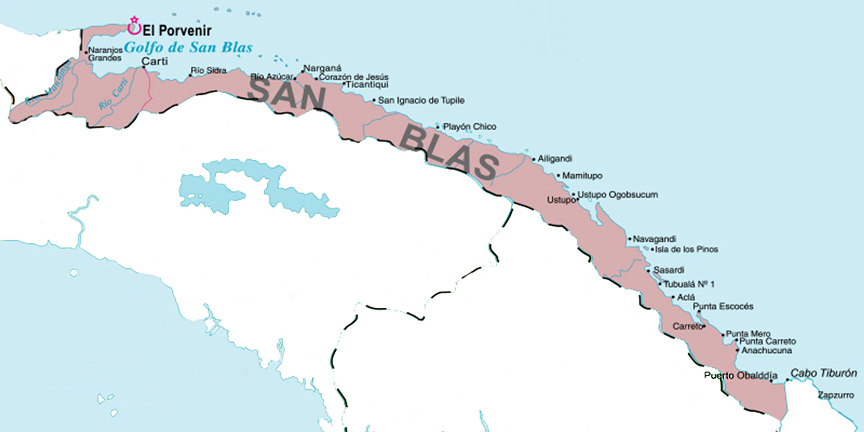 Click on the Kuna Yala (san Blas) Panama Political Map to view it full screen. File Type: jpg, File size: 142622 bytes (139.28 KB), Map Dimensions: 864px x 432px (16777216 colors)