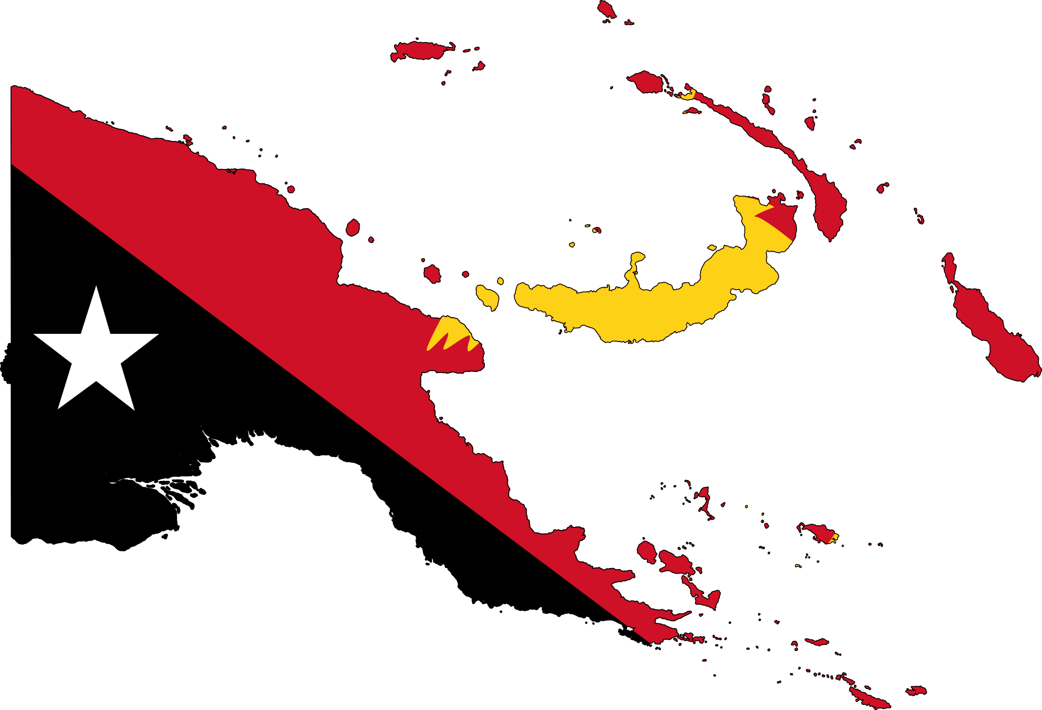 Click on the Papua New Guinea Flag Map to view it full screen. File Type: png, File size: 71773 bytes (70.09 KB), Map Dimensions: 2048px x 1395px (256 colors)