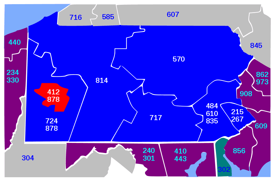 Click on the Area Code 412 to view it full screen. File Type: png, File size: 22741 bytes (22.21 KB), Map Dimensions: 920px x 605px (256 colors)