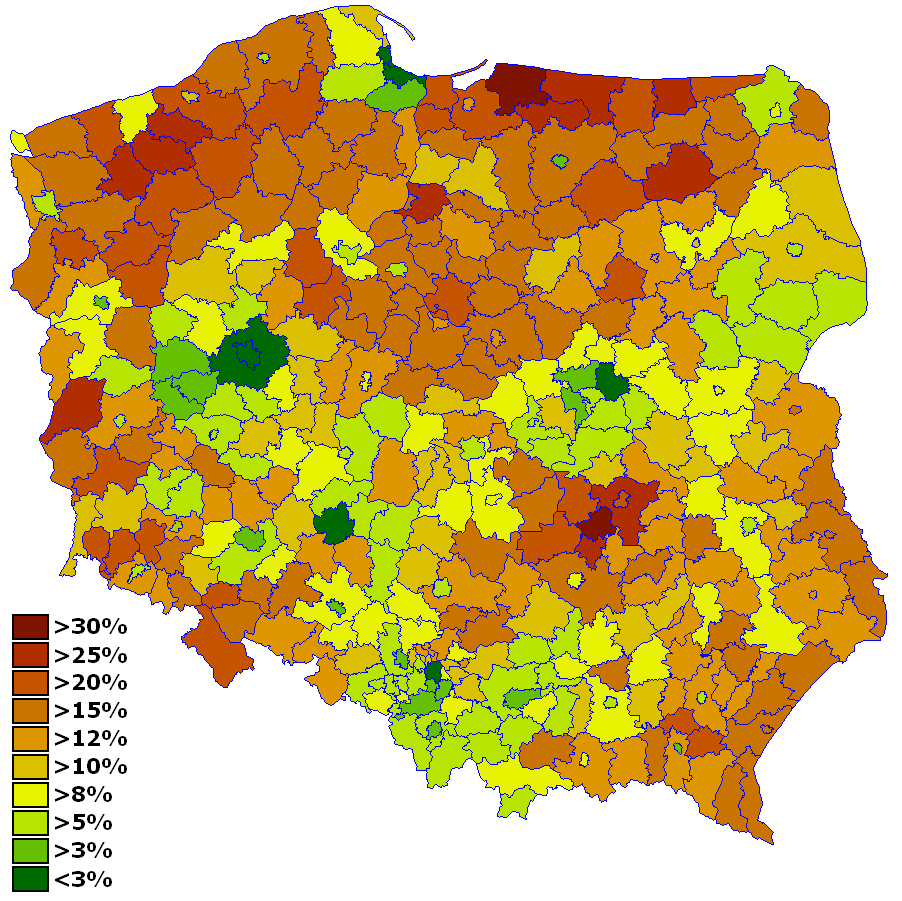 Bezrobocie Wg Powiatow Ii 2008 Barry Kent