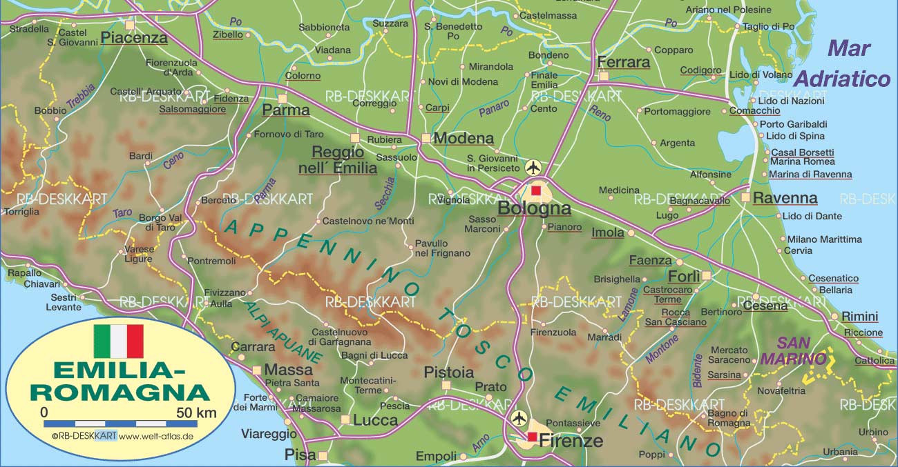 Pysical Map Emilia Romagna