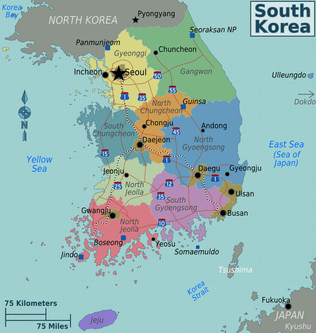 South Korea Regions Map
