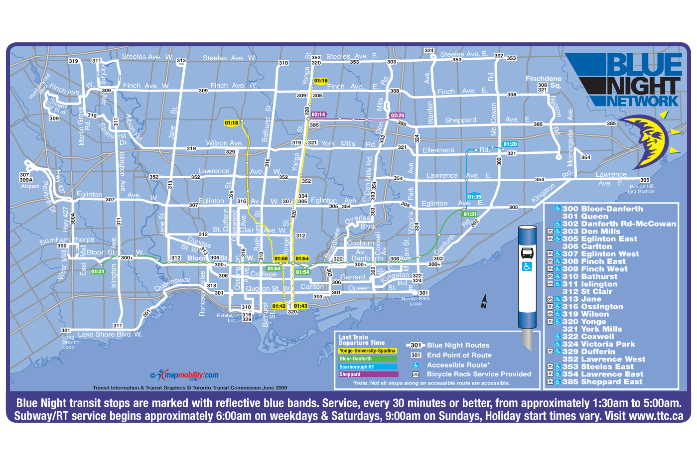 Toronto Blue Night Network Map