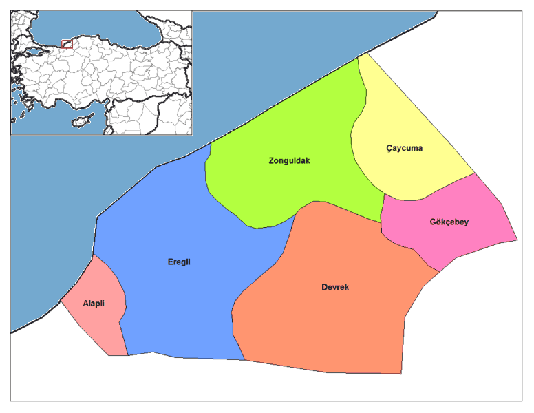 Click on the Zonguldak Districts to view it full screen. File Type: png, File size: 20955 bytes (20.46 KB), Map Dimensions: 776px x 600px (256 colors)