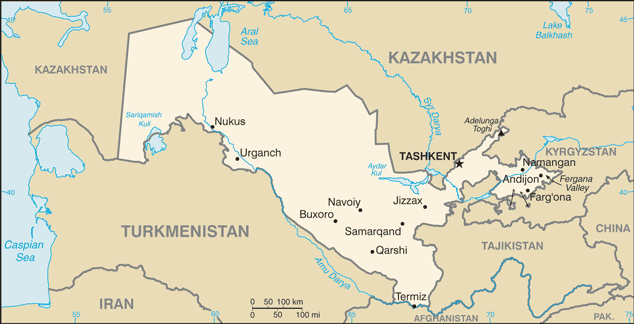 Uzbekistan Cia Wfb Map