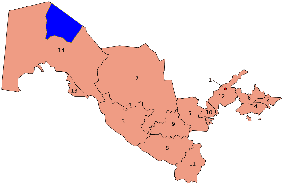 Uzbekistan Provinces Numbered