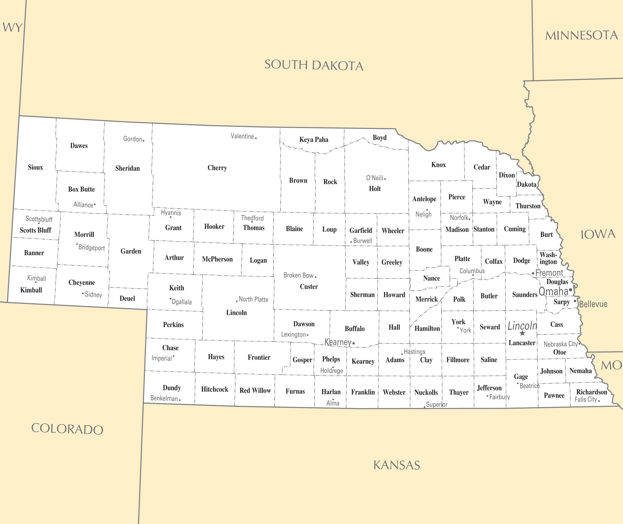 Counties Map of Nebraska