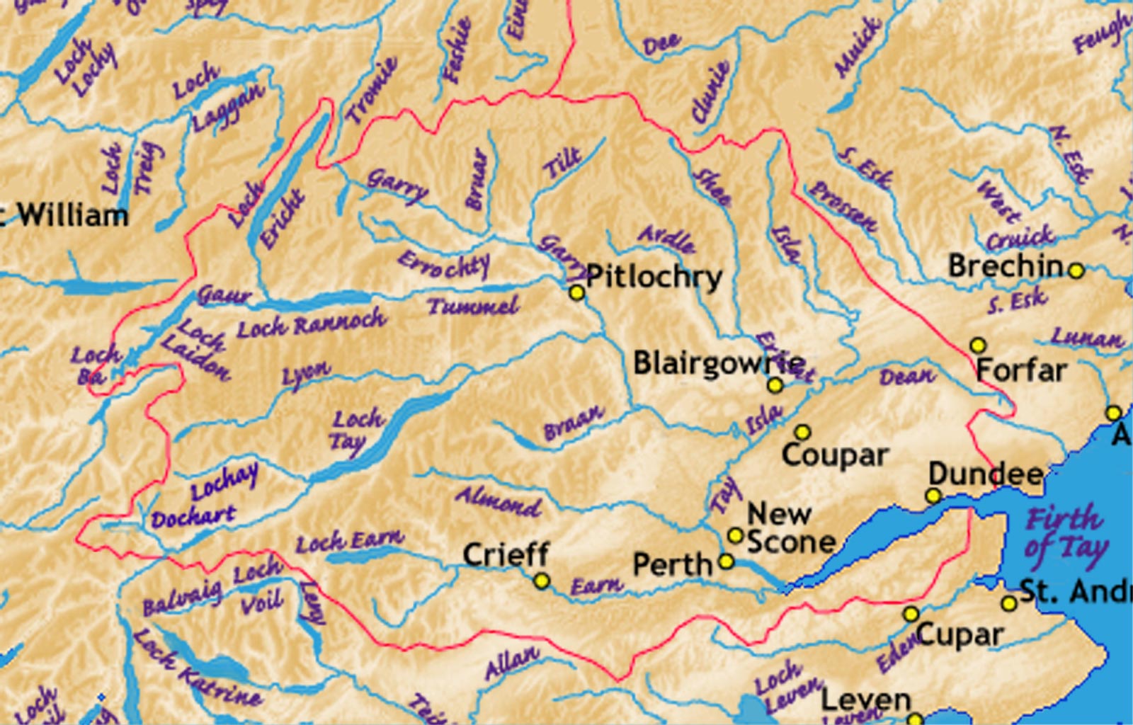 Click on the Tay Tributaries to view it full screen. File Type: jpg, File size: 262569 bytes (256.42 KB), Map Dimensions: 1600px x 1024px (16777216 colors)