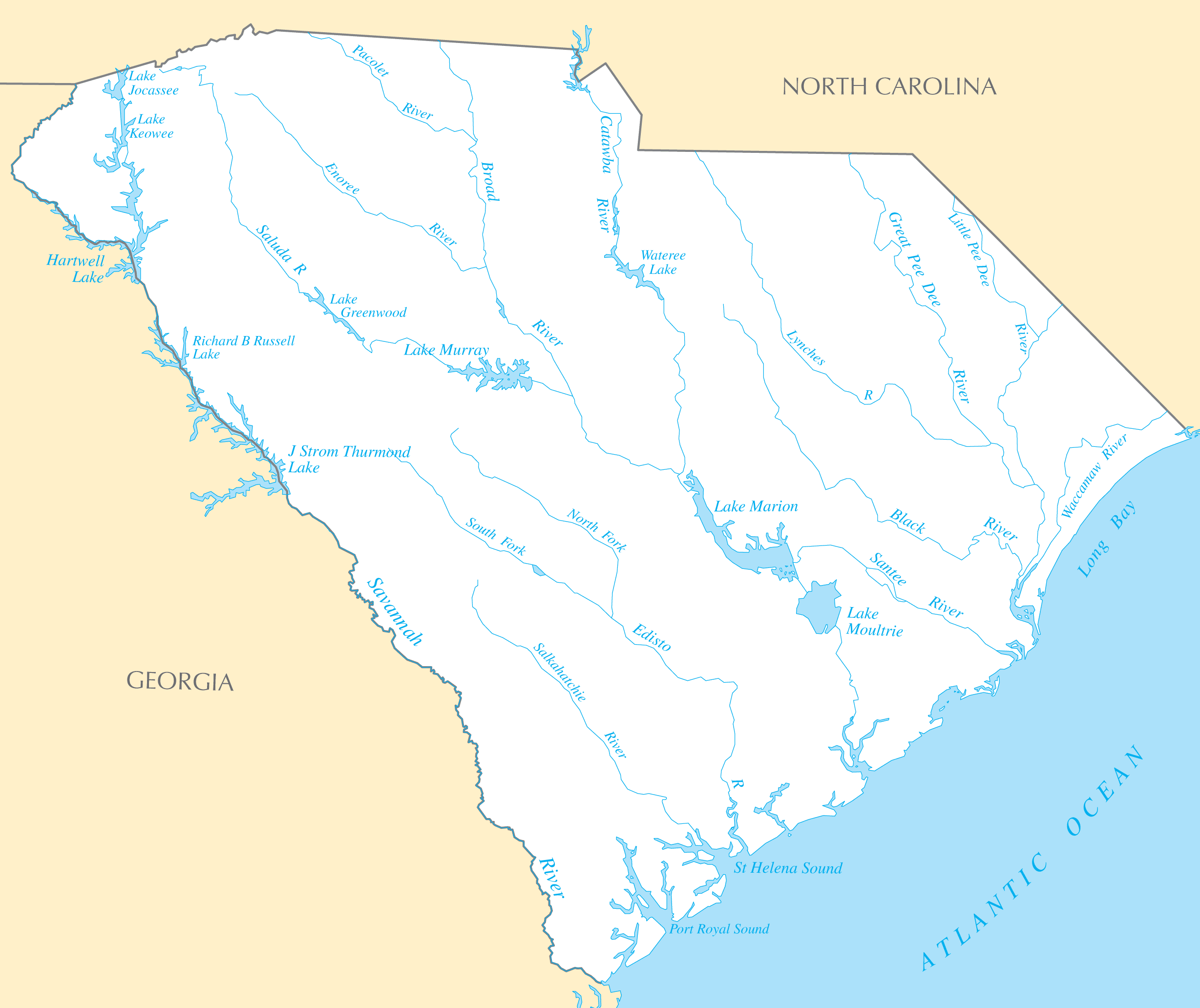 South Carolina's river systems define its geographic regions and major cities.