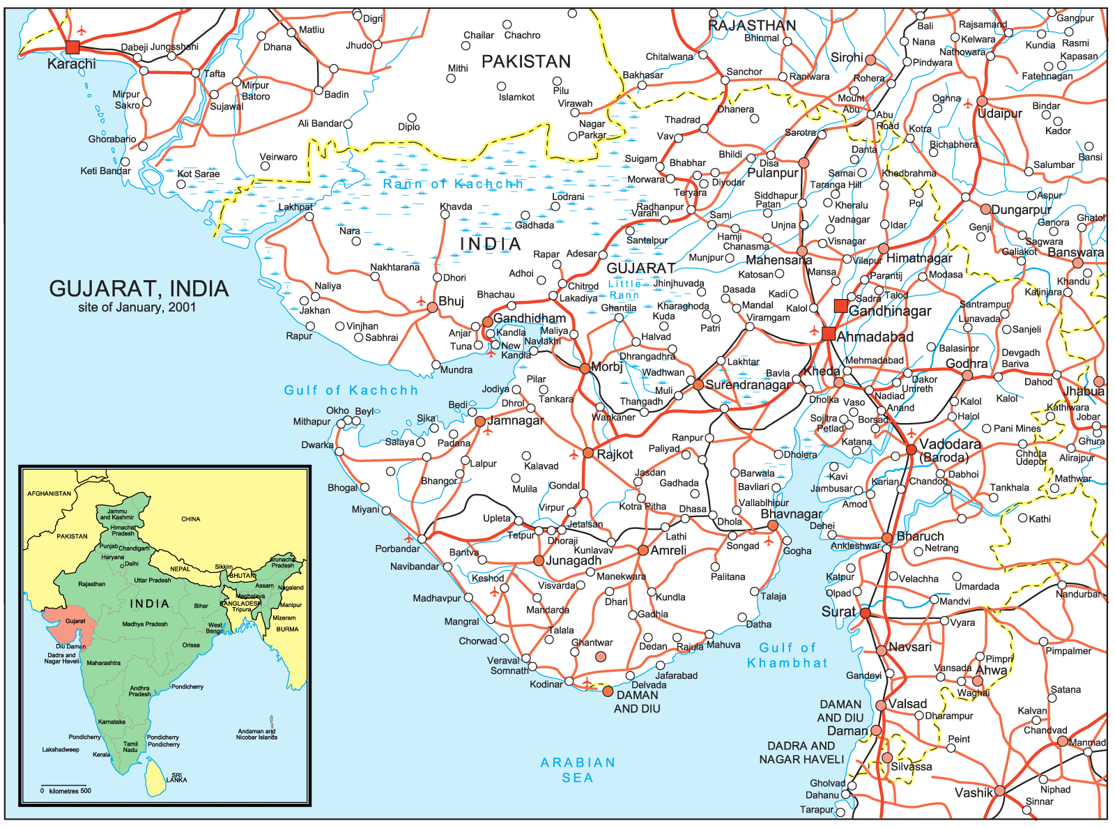 Cities Map of Gujarat