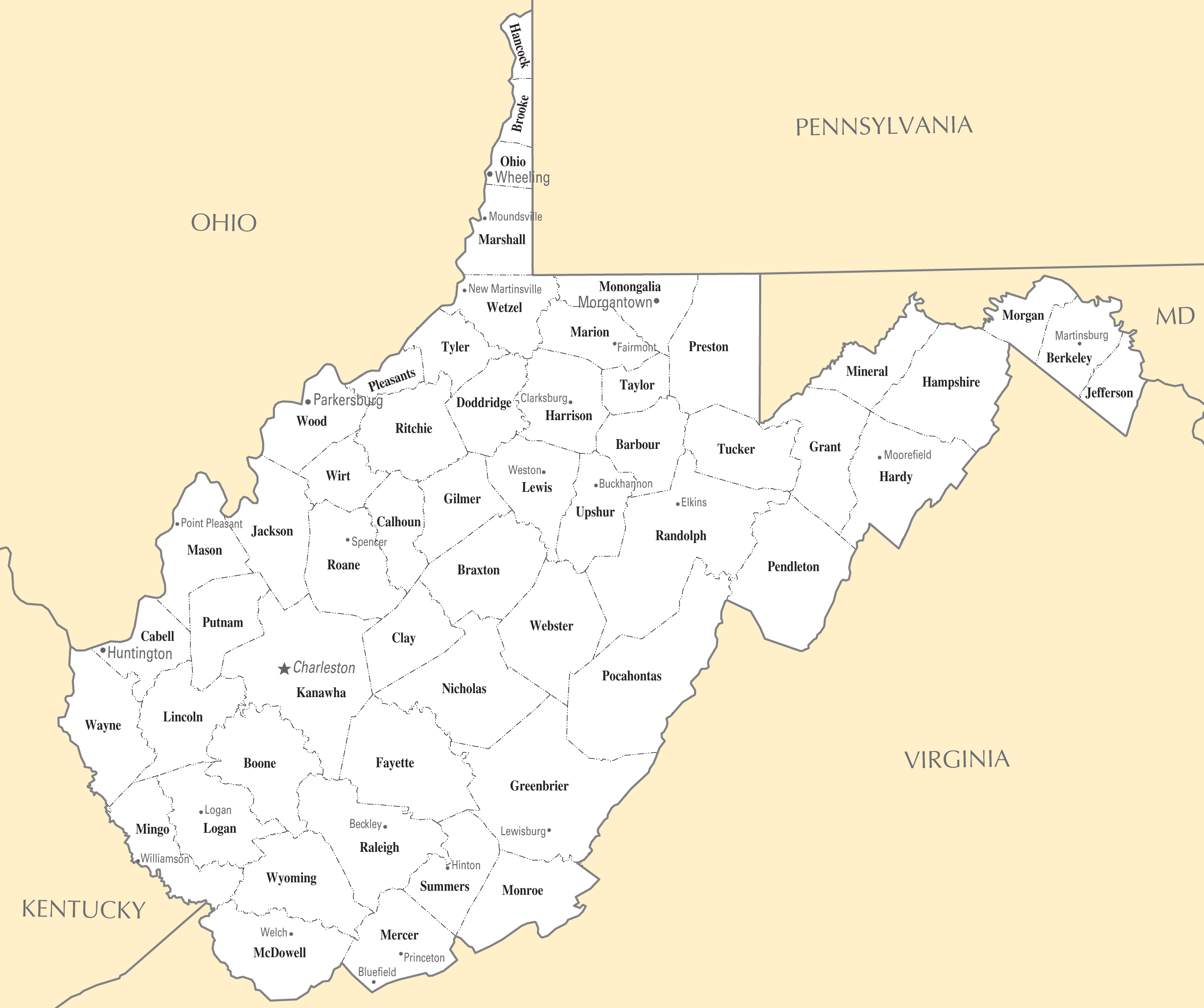 West Virginia County Map